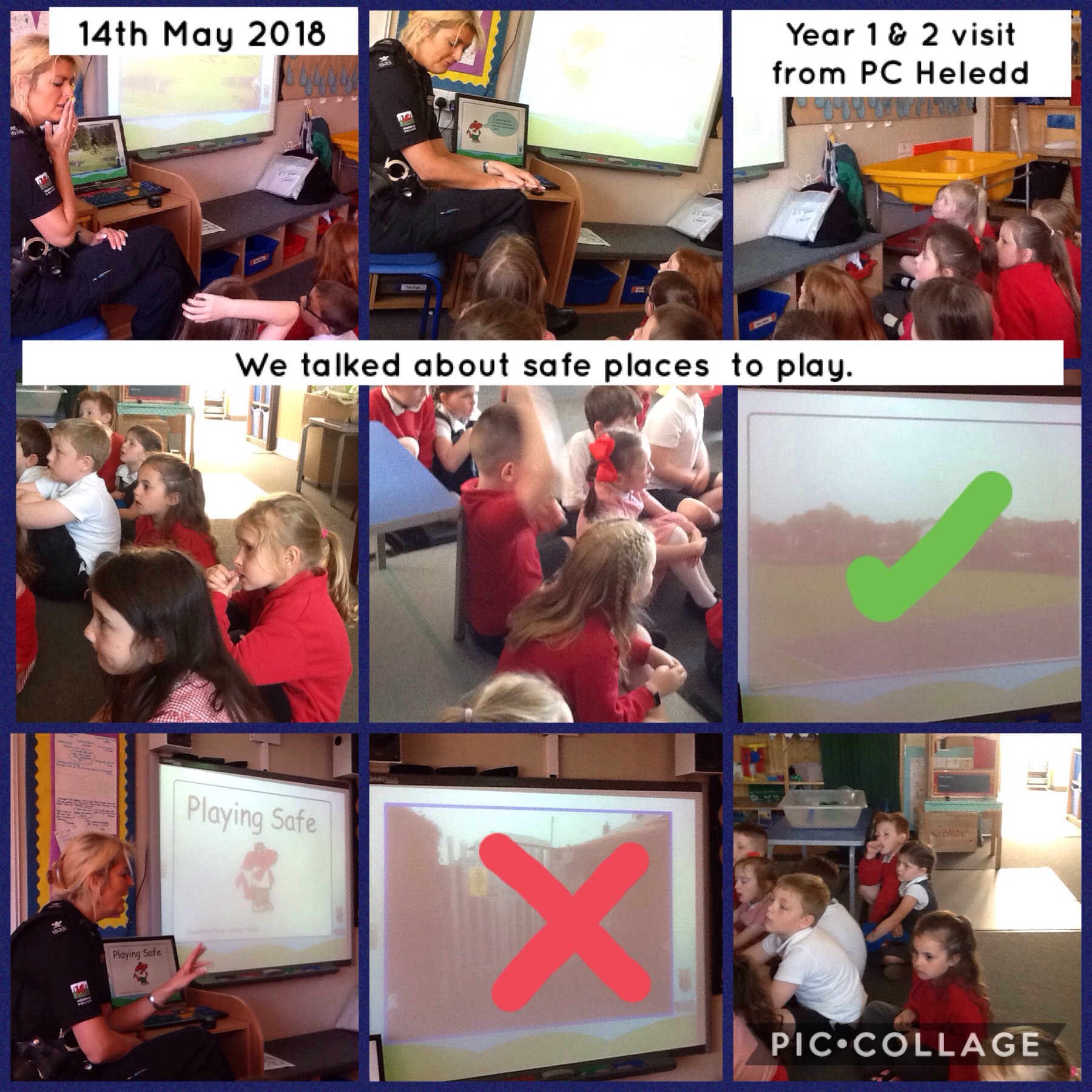 Dosbarth Gwenyn & Dosbarth Pili Pala: Visit from PC Heledd Wed, 16th May 2018The children in years 1 and 2 enjoyed their visit from PC Heledd today. We talked about safe places to play. The children were so well behaved and responded well to questions.
